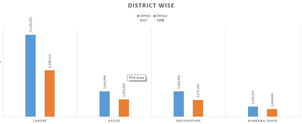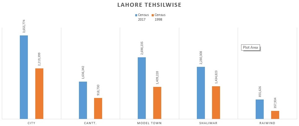 The population of District Lahore (tehsil-wise) on the basis of census conducted on 1998 and 2017 respectively is :