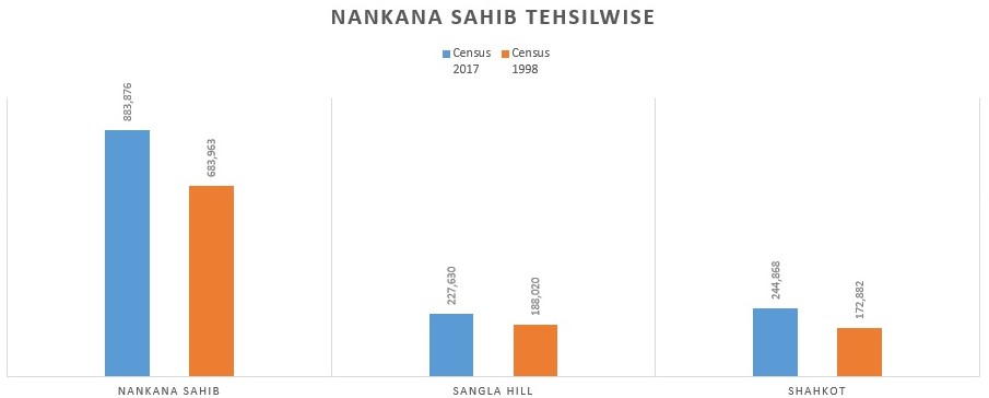 The population of District Nankana Sahib (tehsil-wise) on the basis of census conducted in 1998 and 2017 respectively is: